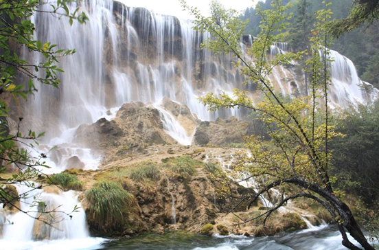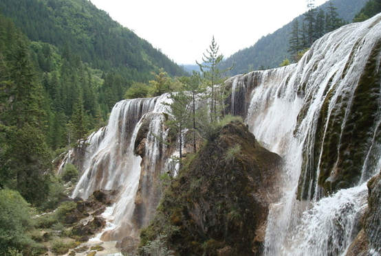 九寨沟珍珠滩据说,很久以前,一位过路的女神爱上了一位藏族青年,小伙子送她一串珍珠项链,女神回赠她一把开山斧。青年用开山斧开水渠引水,被天神知道后,勃然大怒,派兵来捉拿女神,一把扯断了她脖子上的项链,珍珠纷纷落地,化作美丽的珍珠滩。